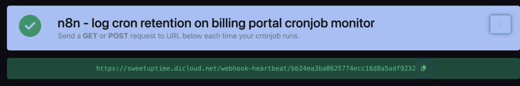 After creating the monitor, SweetUptime will generate a unique tracking URL. You’ll need to ping this URL using POST or GET request every time your cron job runs. It’s recommended to place this ping at the end of the job script.